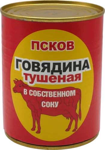 Говядина, субпродукты говяжьи, жир говяжий, вода, соль поваренная пищевая, загуститель Е 407, лук сухой, перец черный молотый, лист лавровый сухой.