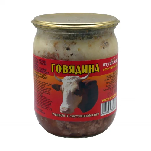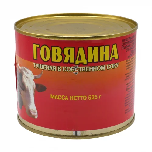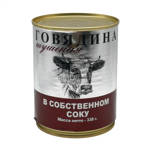 Говядина тушеная в собственном соку СТО 338 гр. (черный бык)