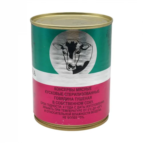 Говядина тушеная собственном соку 338 гр. СТО (зеленый бык)