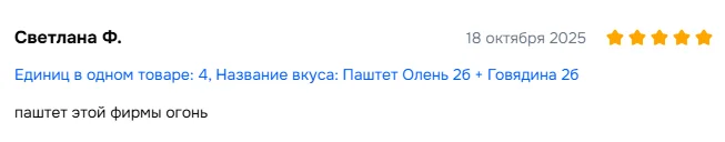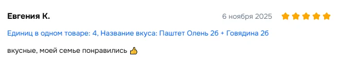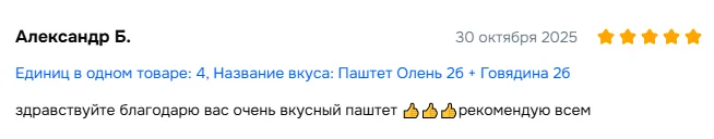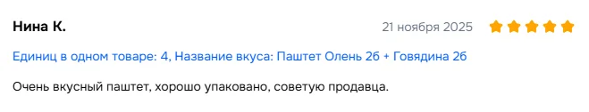Состав: Мясо оленя, бульон мясной, жир топленый свиной, соль, лук, пряности.